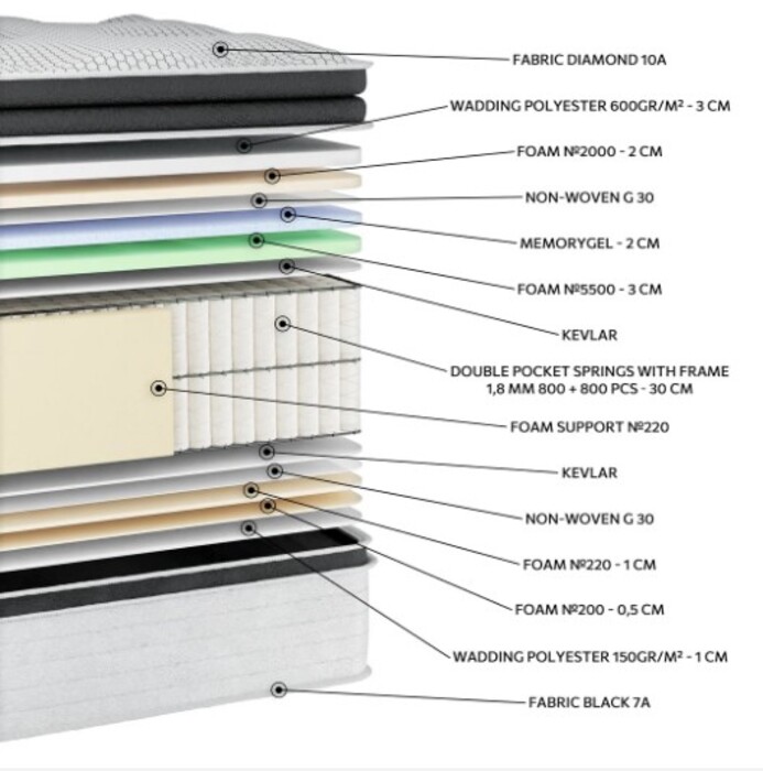 Στρώμα Ύπνου EN42 DIAMOND MEMORYGEL HR G-PILLOWTOP DOUBLE POCKET