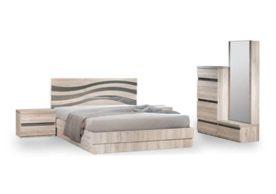 Το σέτ περιλαμβάνει 1 τεμ Κρεβάτι για στρώμα 160 * 200 cm με κεφαλάρι 110Υ cm - 230Μ cm .