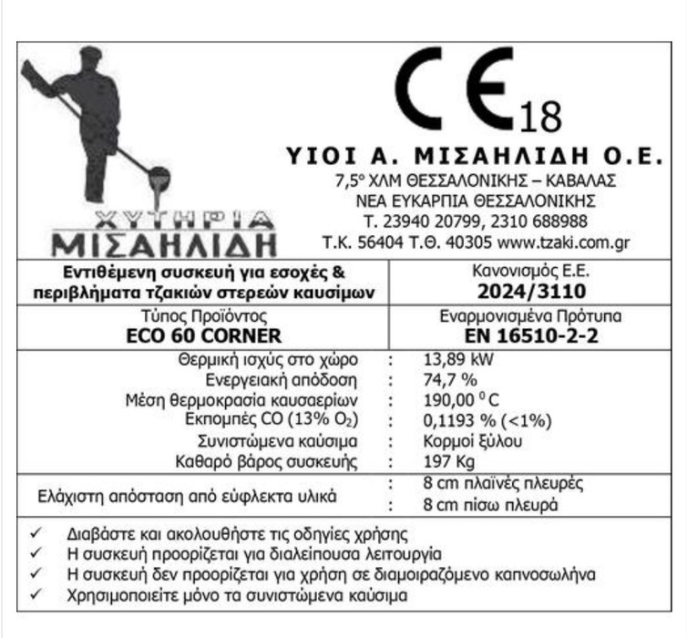 – Τζάκι διπλού τοιχώματος αποτελούμενο από χάλυβα 4mm.