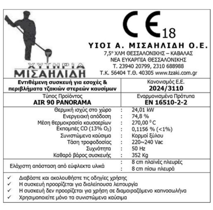 – Τζάκι διπλού τοιχώματος αποτελούμενο από χάλυβα 4mm.