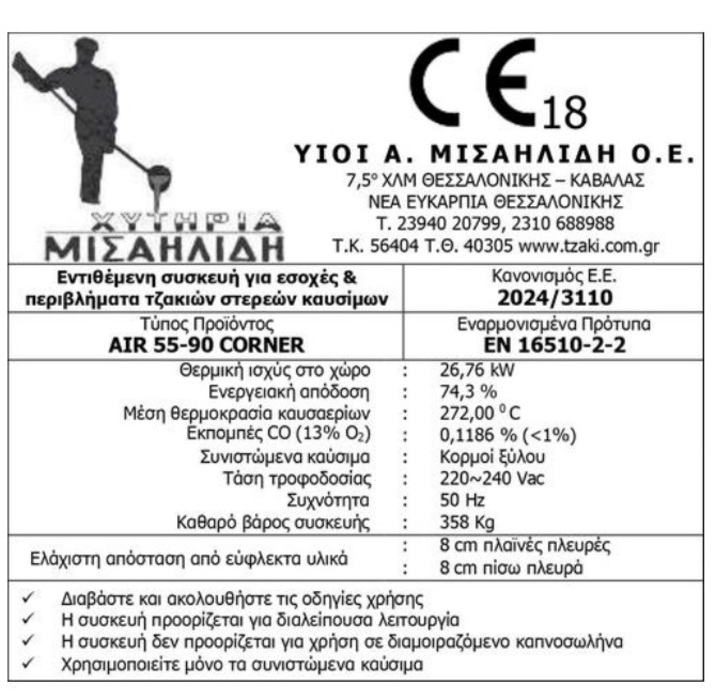 | Διάμετρος καμινάδας (mm) | Φ250 |