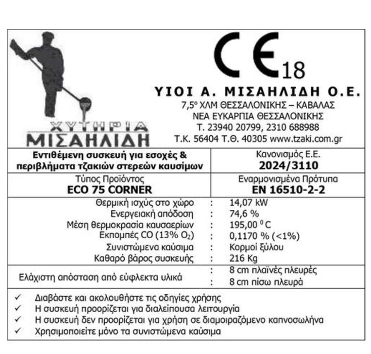 | Διάμετρος καμινάδας (mm) | Φ250 |