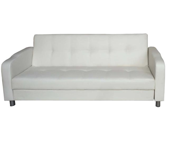 Valeria κομψός καναπές-κρεβάτι εισαγωγής με μπράτσα, συνδυάζει την ξεκούραση για ένα άνετο ύπνο, με το απόλυτο στυλ. Με επένδυση από λευκό PU και πόδια μεταλλικά βαφής