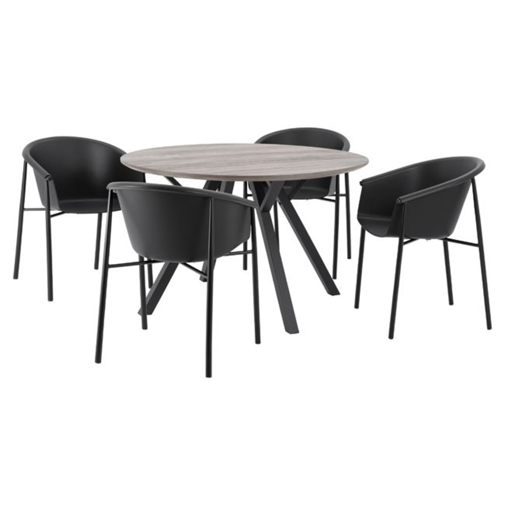 Τέσσερις πολυθρόνες HELGA κατασκευασμένες από πολυπροπυλένιο σε μαύρη απόχρωση και μεταλλικά πόδια σε μαύρη απόχρωση.